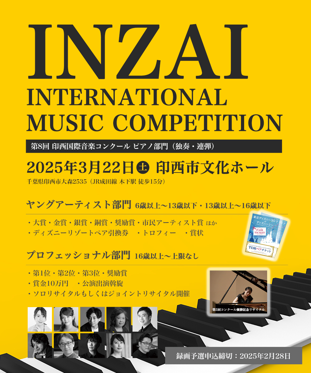- ヤングアーティスト部門本選プログラム【ご案内】 出場者欠席などによりスケジュールに変更が生じる場合があります。当日は、最新のスケジュールを必ずご確認ください。 ◆第8回印西国際音楽コンクール[ピアノ部門]ヤングアーティスト部門審査スケジュール 2025年3 […]